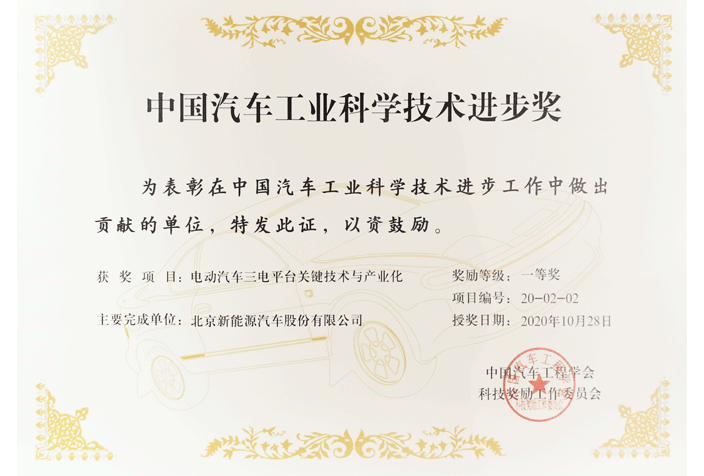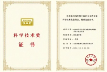 中国汽车工业科技进步奖三等奖(纯电动汽车高安全电子电气架构关键技术及产业化)